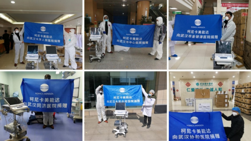 在武汉市疫情最为严峻的春节时期,柯尼卡美能达株式会社在了解当地医疗需求后,携旗下在华子公司:柯尼卡美能达(中国)投资有限公司、柯尼卡美能达医疗印刷器材(上海)有限公司,向武汉6所一线救援医院捐赠了8台总价约600万人民币的柯尼卡美能达SONIMAGE HS-1超声诊断系统,用于医院重症监护科室(ICU)的患者观察,以减轻前线医务人员的工作负担。